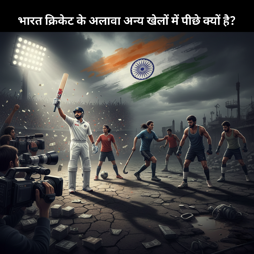 क्रिकेट में भारत विश्व शक्ति है, लेकिन हॉकी, फुटबॉल, एथलेटिक्स, बॉक्सिंग, रेसलिंग, तैराकी, टेनिस, बैडमिंटन जैसे खेलों में हम कभी-कभी ही चमकते हैं। यह सिर्फ खिलाड़ियों की गलती नहीं है, बल्कि एक पूरी सिस्टम फेलियर की कहानी है।